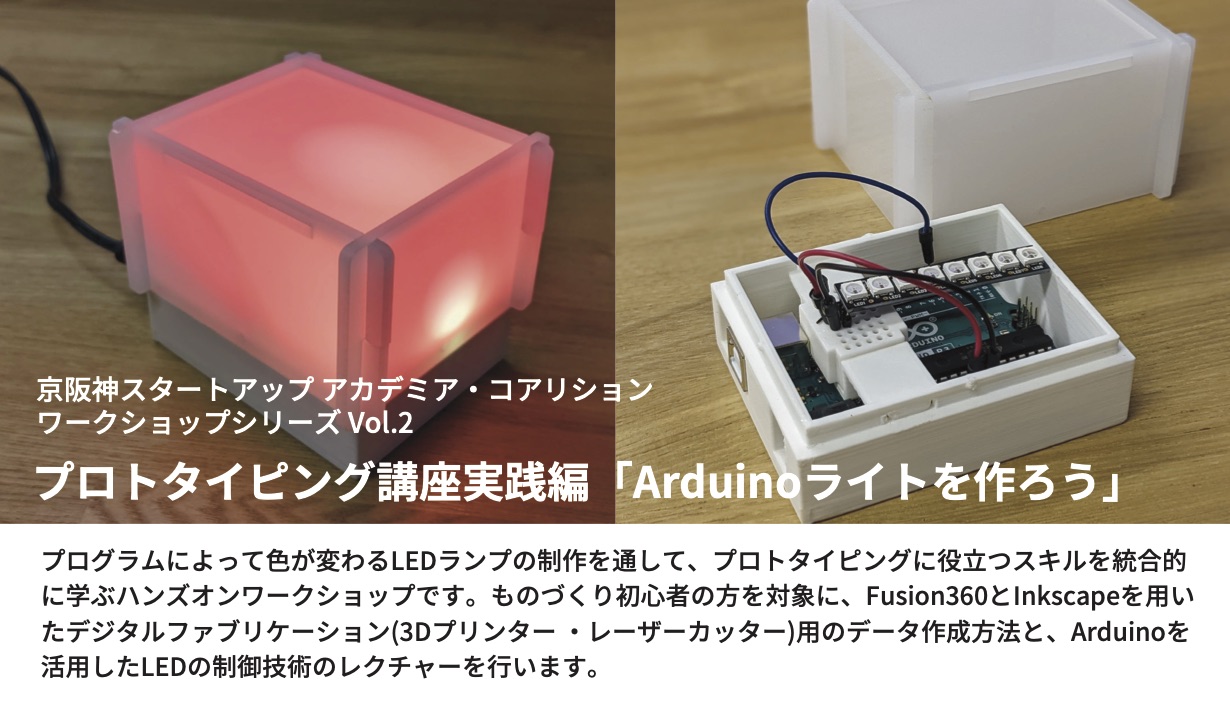 プログラムによって色が変わるLEDランプの制作を通して、プロトタイピングに役立つスキルを統合的に学ぶハンズオンワークショップです。ものづくり初心者の方... -