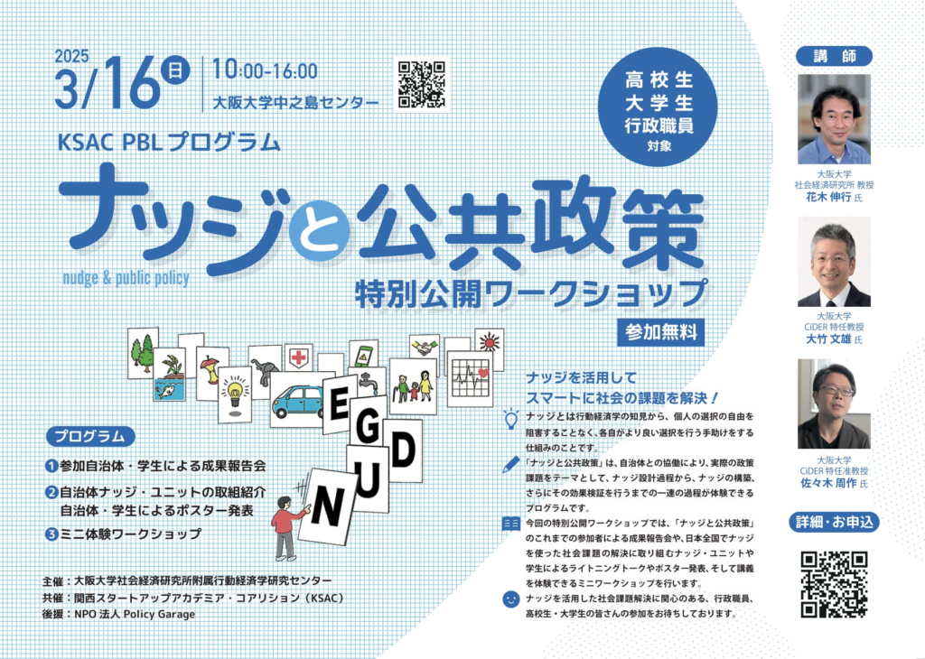 【参加者募集中】大阪大学PBL ナッジと公共政策