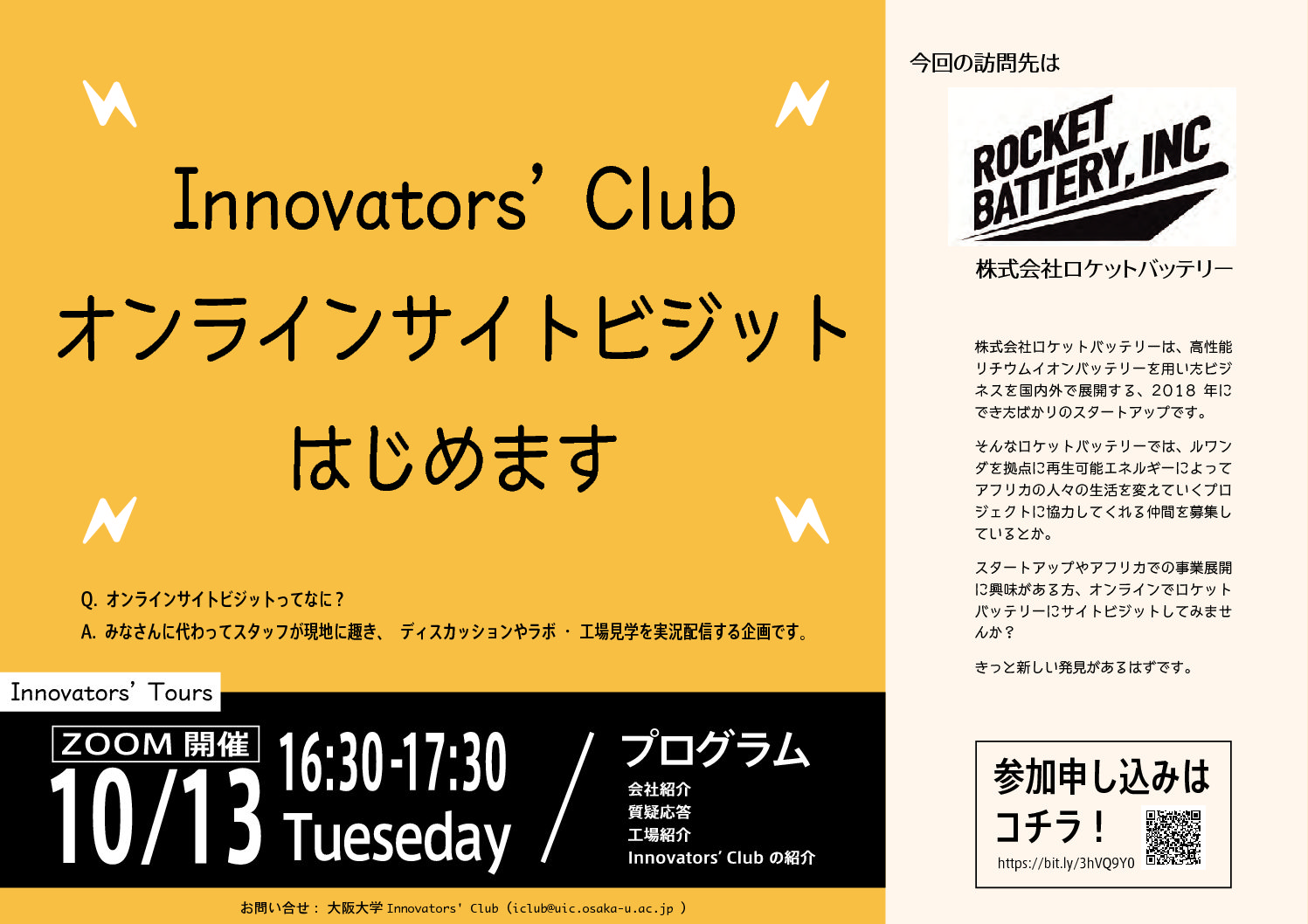 10/13(火)16:30〜 i-Tours オンラインサイトビジット(株)ロケットバッテリー