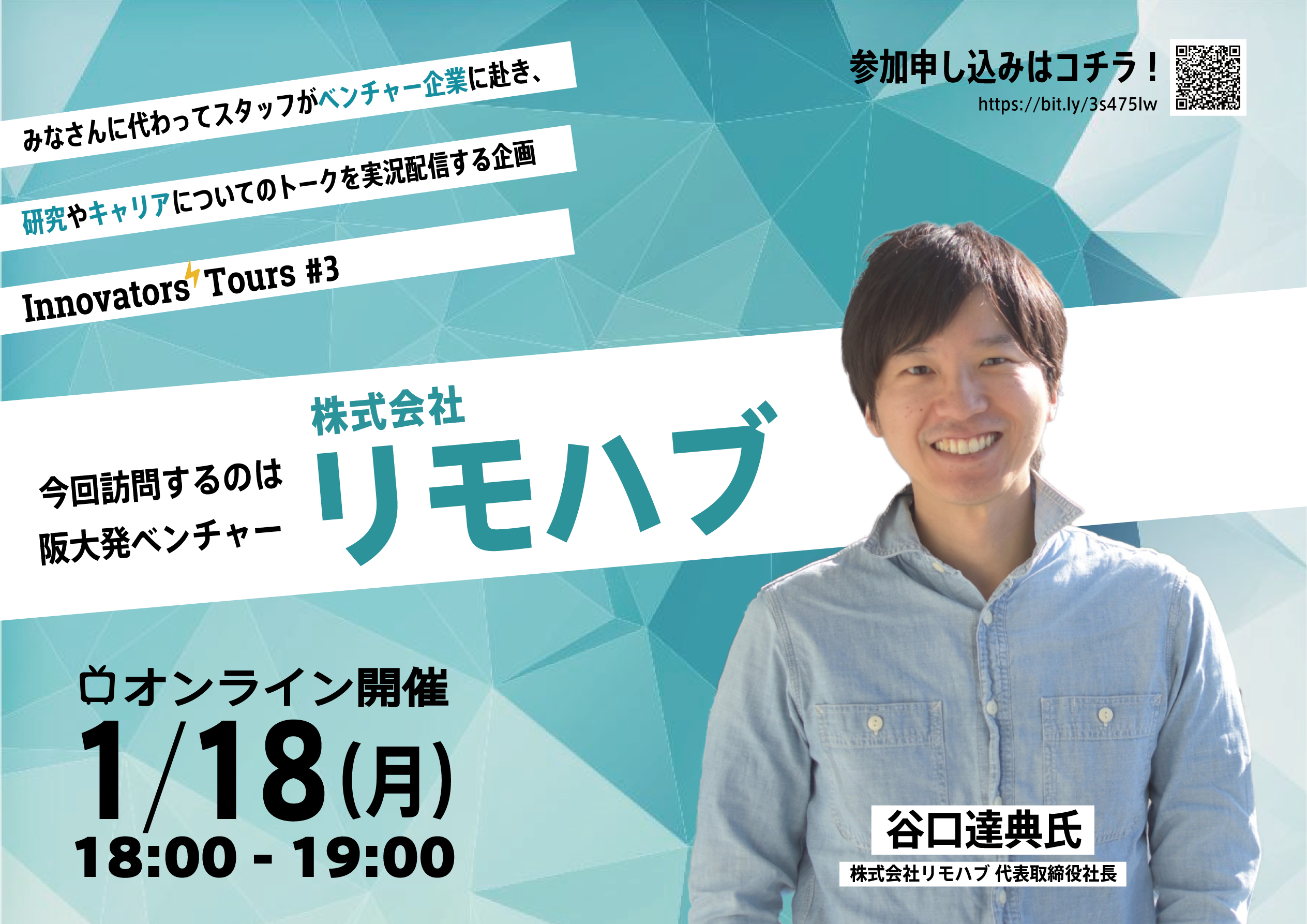 【阪大生限定】1/18(月)18:00から、阪大発ベンチャー株式会社リモハブの(オンライン)見学会を開催します! -Innovators’ Tours #3-