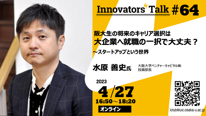 Innovators’ Talk #64 阪大生の将来のキャリア選択は大企業へ就職の一択で大丈夫?〜スタートアップという世界