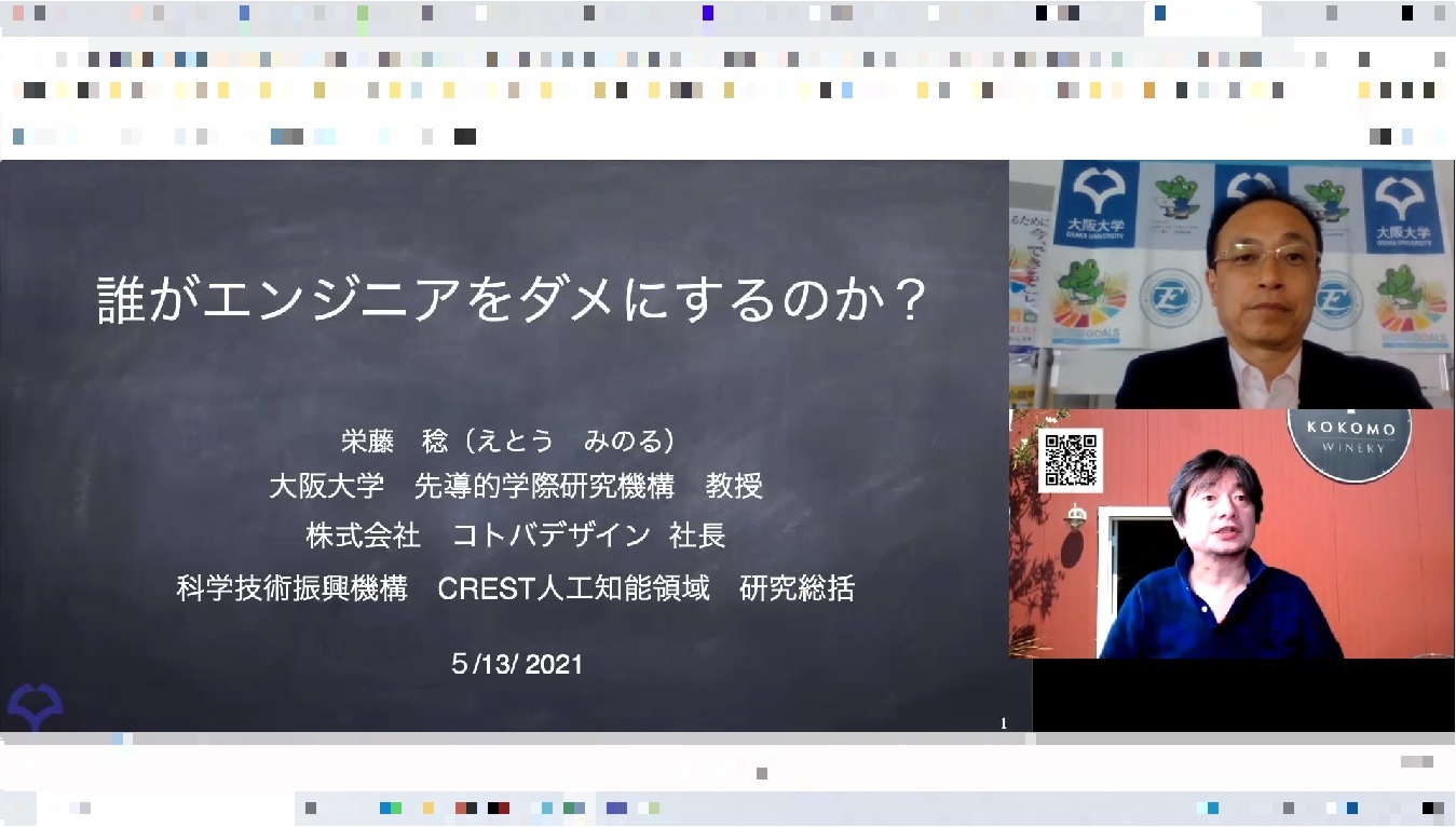 大阪大学教授の栄藤稔さんをゲストにお迎えして「誰がエンジニアをダメにするか」というスパイシーなタイトルでお話し頂きました。
