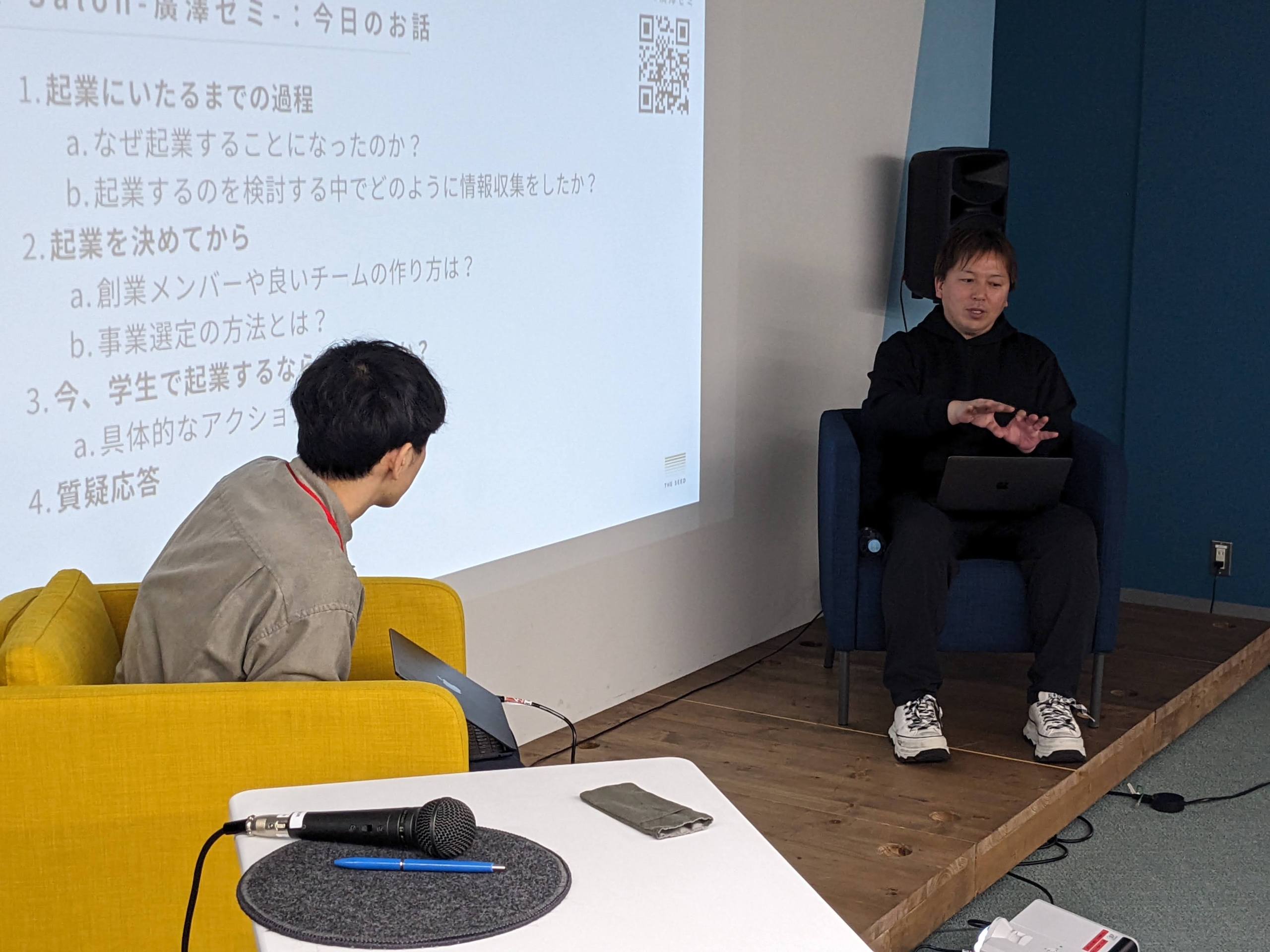第5回はTHE SEEDの廣澤太紀氏が司会となり,廣澤ゼミとしてスタートアップ企業の代表の方をお招きして「起業の始め方」についてご講演いただきました.