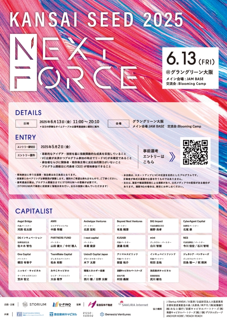 6月13日(金)11:00から20:10 グラングリーン大阪(JAM BASE他)エントリー締め切り 5月2日(金)エントリーは以下のQRからお願いいたします。 NewsProgram 【万博イベント】ゴキンジョソーゾー 【8/6最終締切】Innovators’ Squad 2025 募集要項(随時募集中)