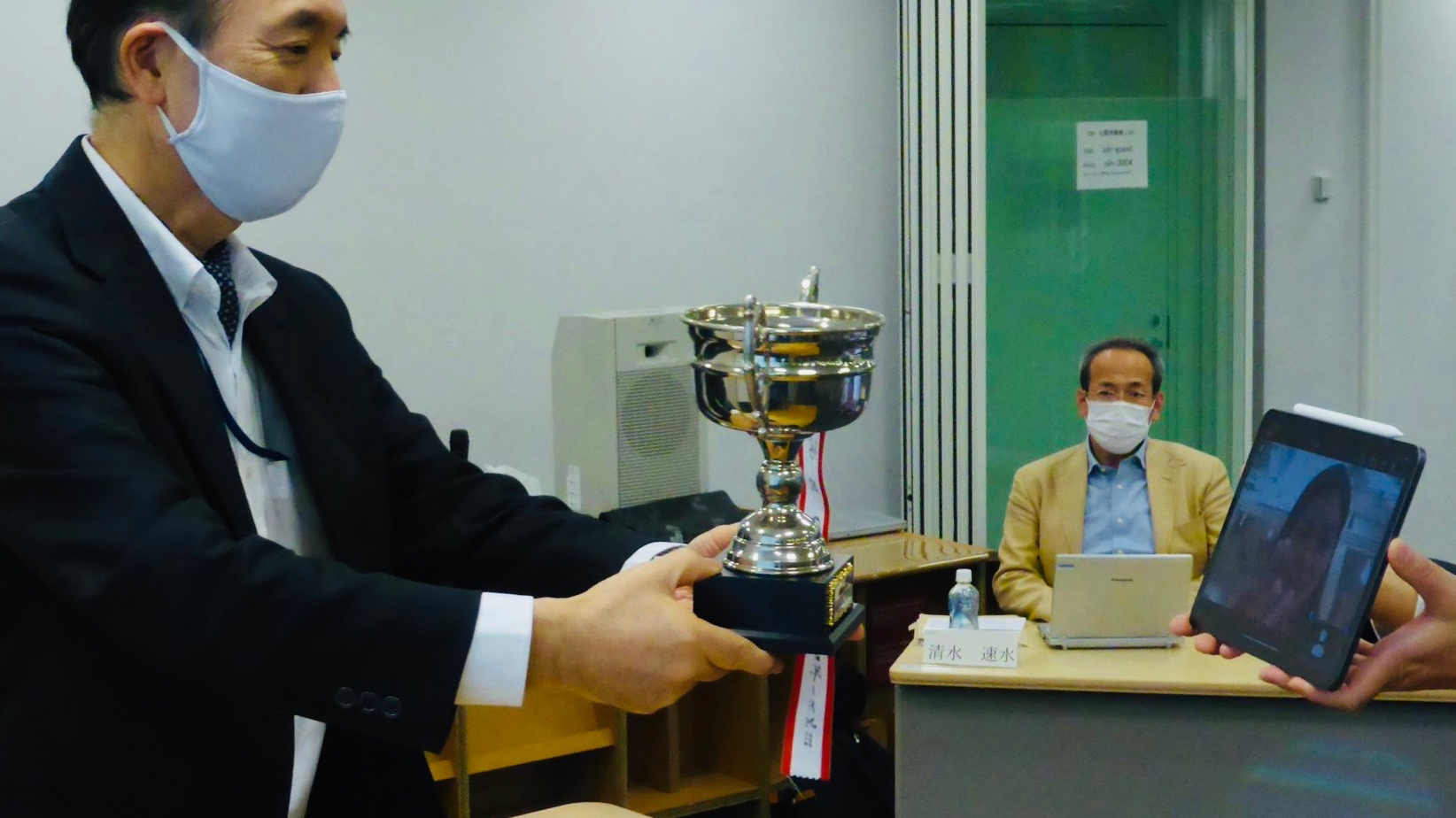 (写真:吉川審査委員長による優勝カップのバーチャル授与)
