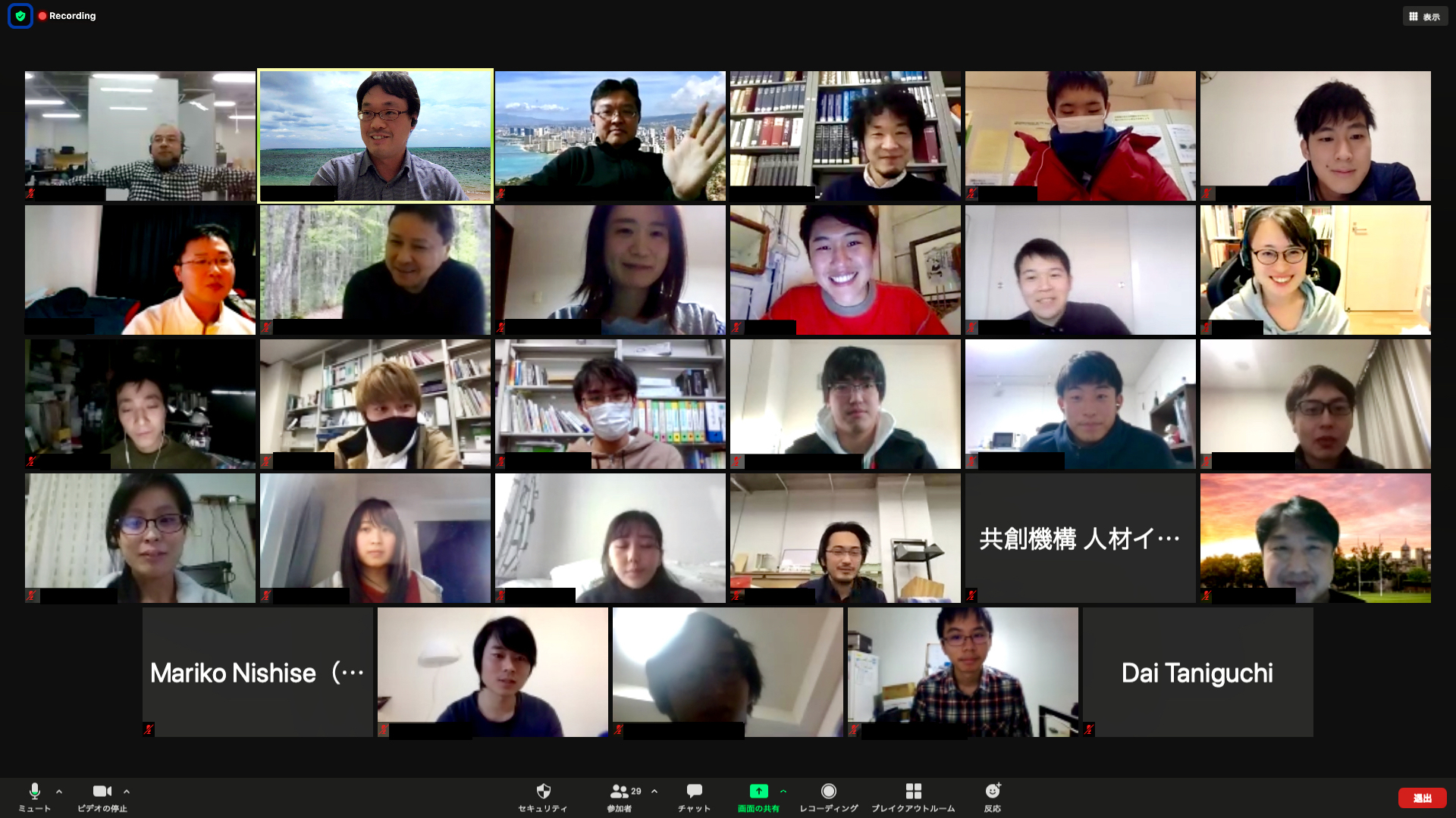 (写真はオンラインによる中間報告会の「記念スクショ」)