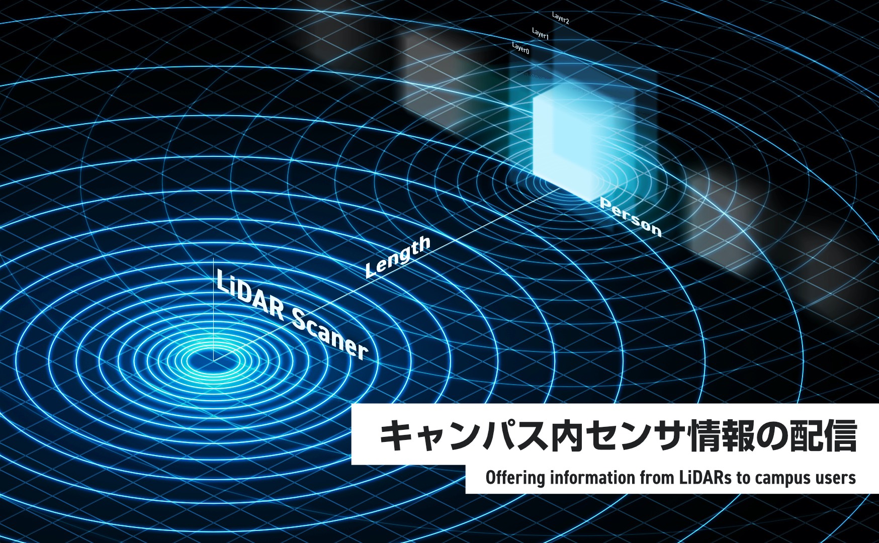 キャンパスに高密度に設置したセンサーから得られる人流・温度などのデータを活用し,キャンパス利用者にとって有用な情報を提供するサービスを開発します。