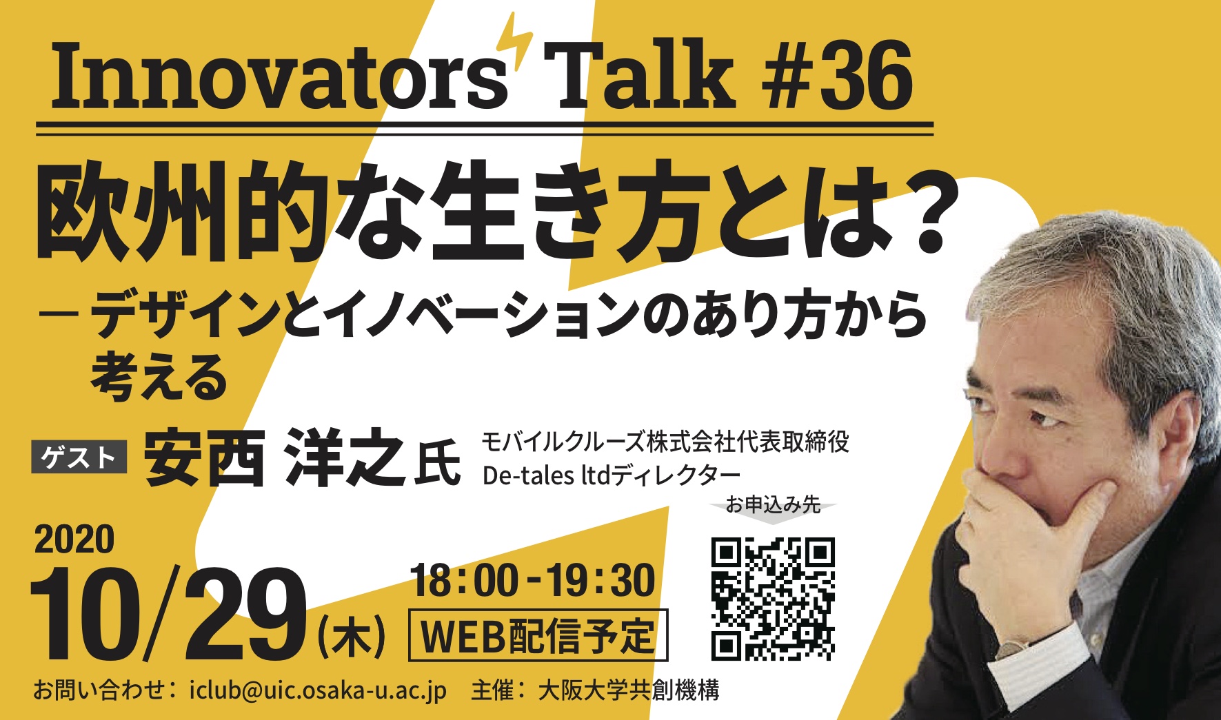 Innovators' Talk #36欧州的な生き方とは?-デザインとイノベーションのあり方から考える2020年10月29日(木)18時~19時30分ゲスト安西洋之モバイルクルー...