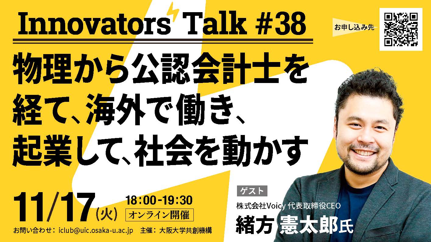 Innovators' Talk #38物理から公認会計士を経て、海外で働き、起業して、社会を動かす11月17日(火)18時~19時30分ゲスト緒方憲太郎氏株式会社Voi... -