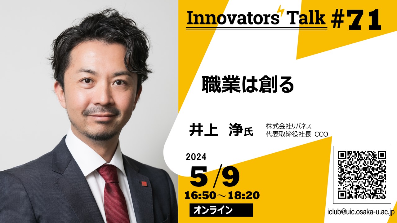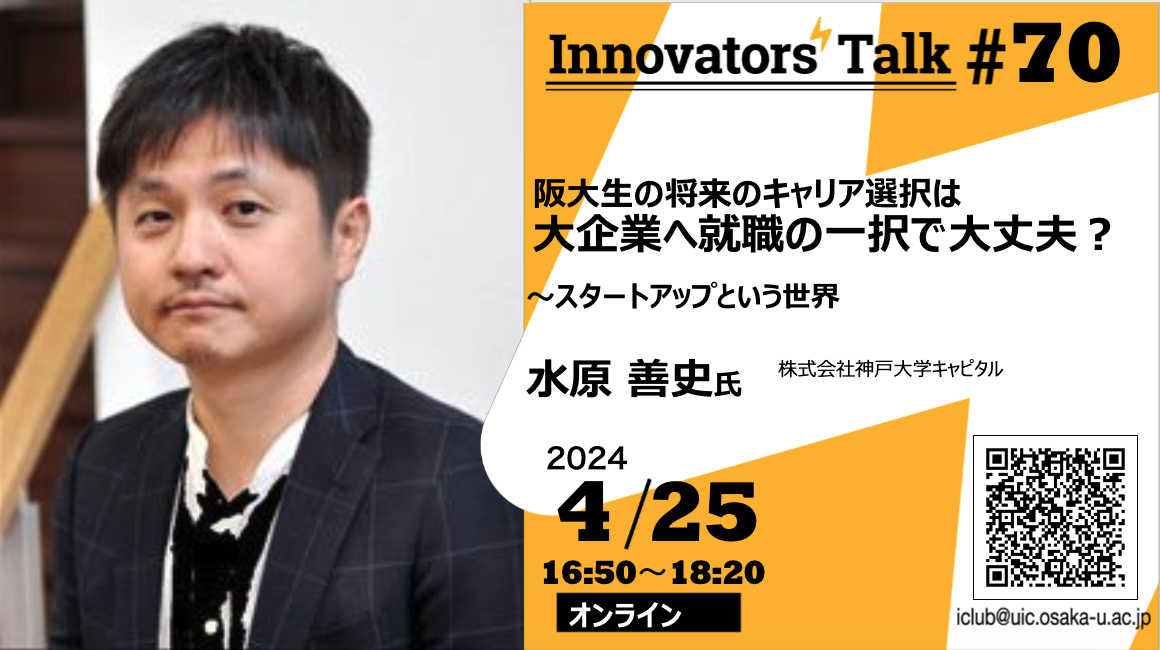Innovators’ Talk #70 阪大生の将来のキャリア選択は大企業へ就職の一択で大丈夫?〜スタートアップという世界